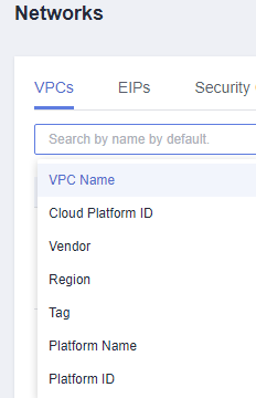 On the Networks page, click a tab, and specify the search criteria to quickly search for network resources.