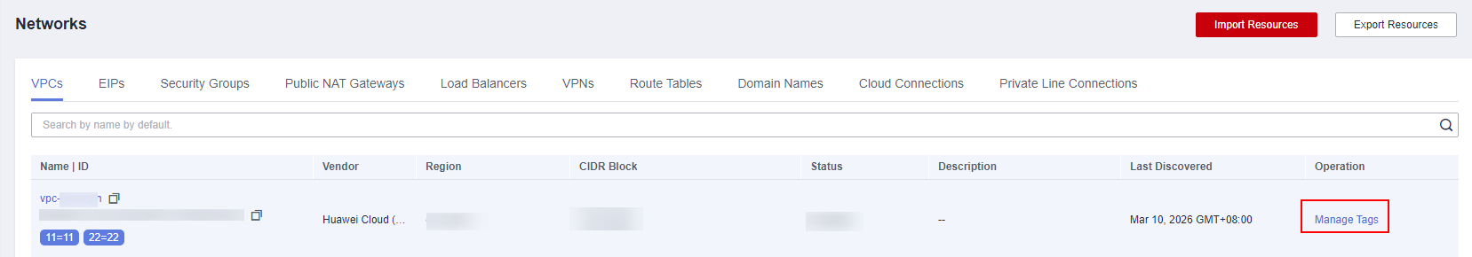When there is a large amount of network resources, you can add tags to them to facilitate identification and quick search.