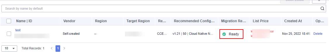 - View the recommended configuration information, estimated migration costs, and migration risks.