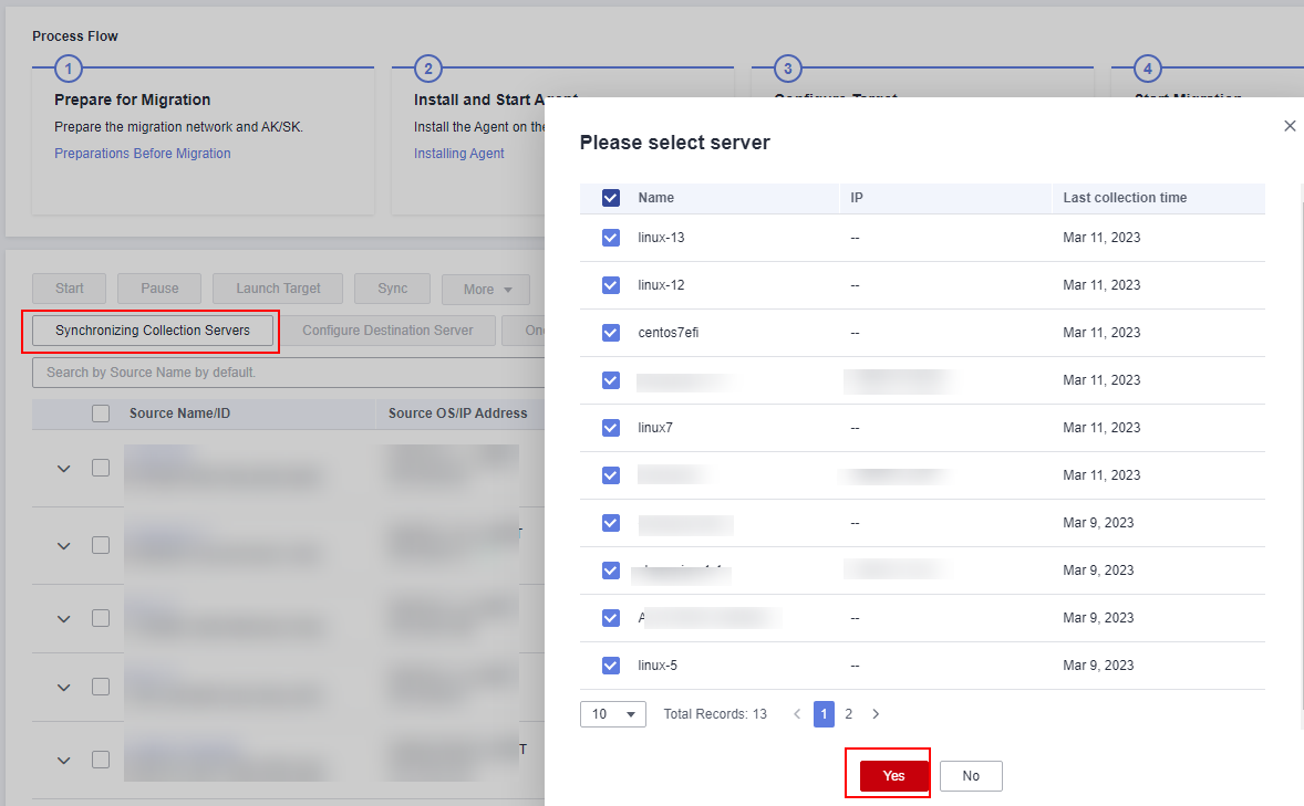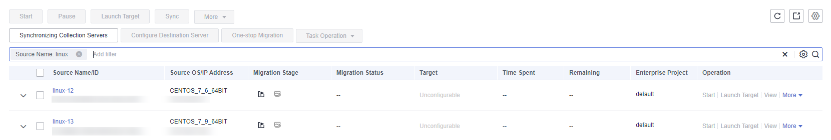 - Click Syncing Collection Servers. The list of collected servers is displayed.