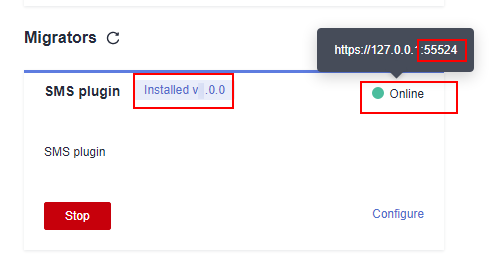 You can hover the mouse pointer on Online to view the startup port of the SMS plugin.