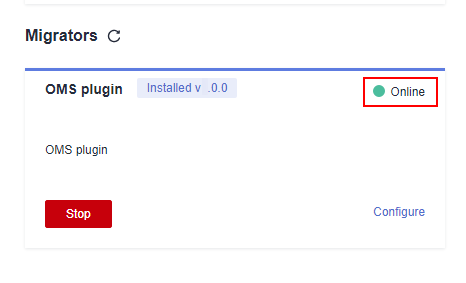 Wait until the configuration is complete. Then click Start in the OMS plugin box. When the status changes from Ready to Online, the OMS plugin is started successfully.