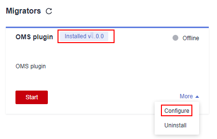 Wait until the OMS plugin is installed. Click More>Configure in the lower right corner of the OMS plugin pane.
