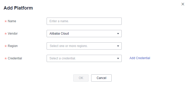 View the added platform in the list. The system automatically checks the credential binding status and discovers resources on the platform.